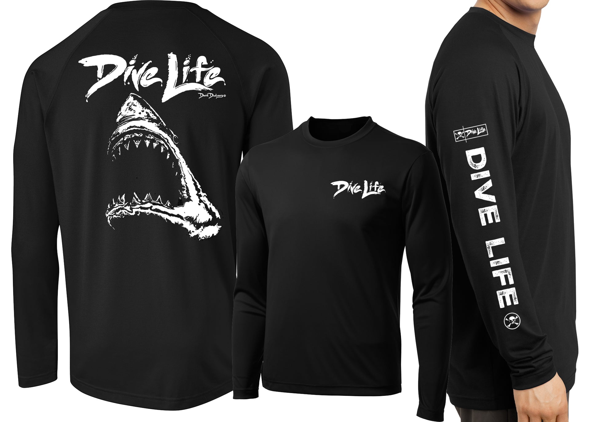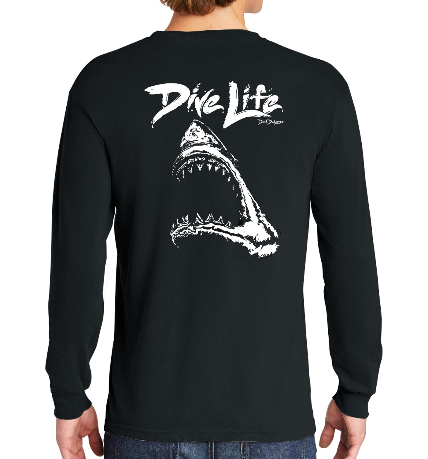 Expertly crafted for maximum comfort and style, the Dive Life Great White Shark T-Shirt features a bold Trademarked Dive Life design on the left chest, sleeve, and back. Made with high-quality garment-dyed cotton and available in Comfort Colors, this shirt is a must-have for any fan of David Dunleavy's Dive Life unique and sought-after designs. Show off your love for the ocean and marine life with this one-of-a-kind shirt.