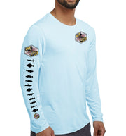 David Dunleavy’s Men's Maryland Grand Slam Long Sleeve Performance Long Sleeve T-shirt features extreme details of a rockfish, flounder, bluefish, weakfish & Maryland flag. Dunleavy's stunningly realistic design on the back, Deco Designs on the left chest and sleeve keeps you looking great while protecting you from the elements. Breathable lightweight performance T-shirt looks great with shorts or jeans. Machine washable.