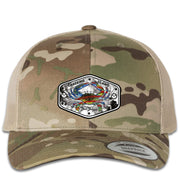 American Blue Crab 6 Panel Trucker Snap Back Mulitcam Green Khaki Hat