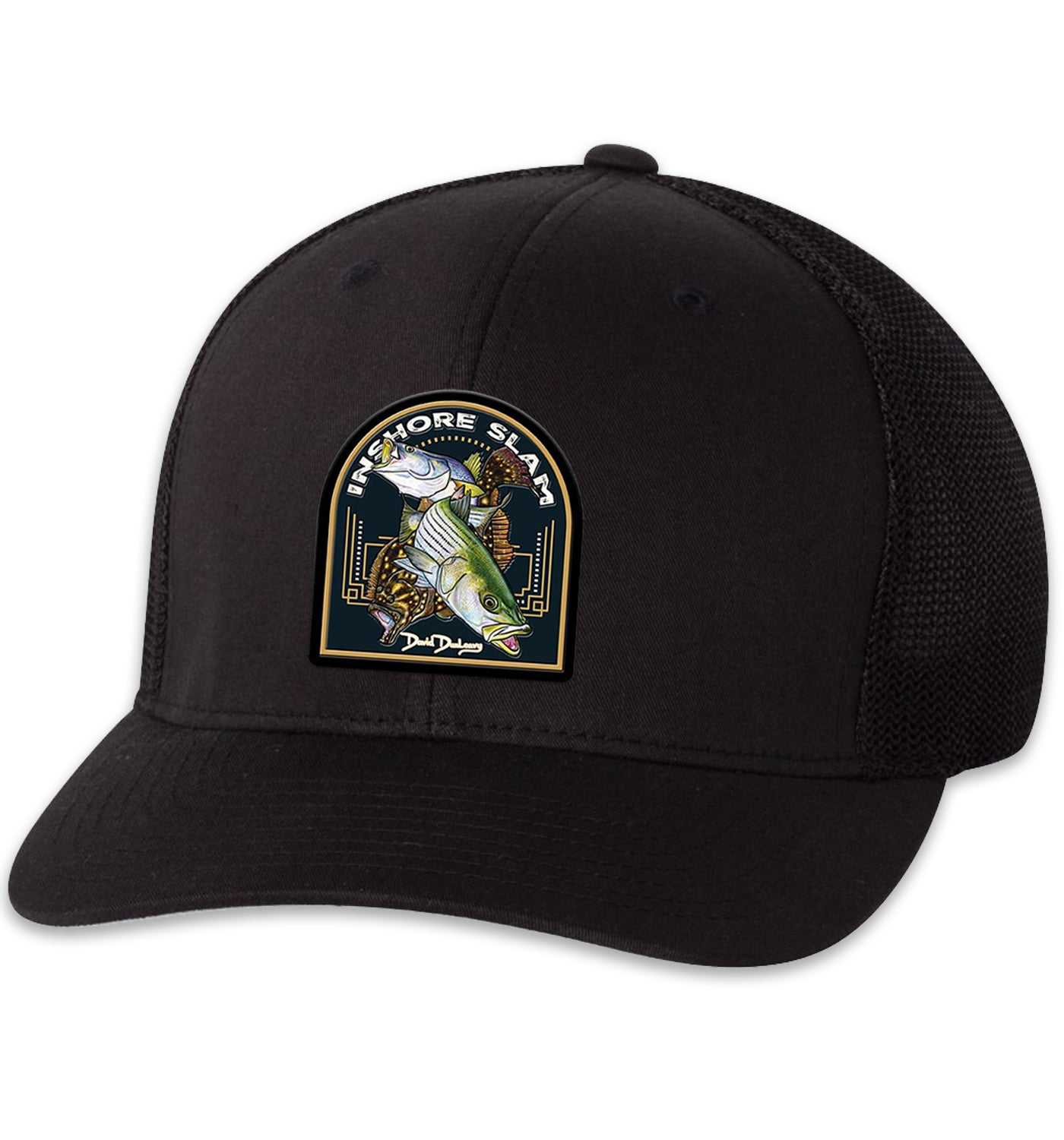 Inshore Slam 6 Panel Black Black Flexfit Trucker Hat