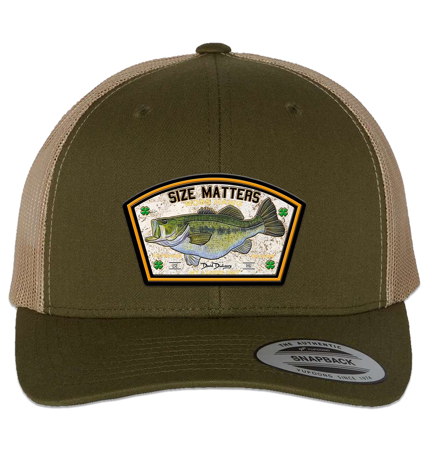 Size Matters Largemouth Bass 6 Panel Trucker Snap Back Hat Moss Khaki