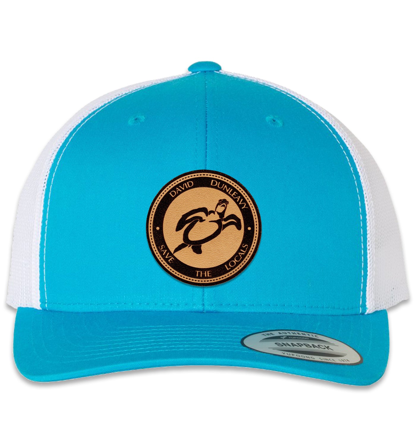 Turtle Deco 6 Panel Trucker Snap Back Turquoise White Hat