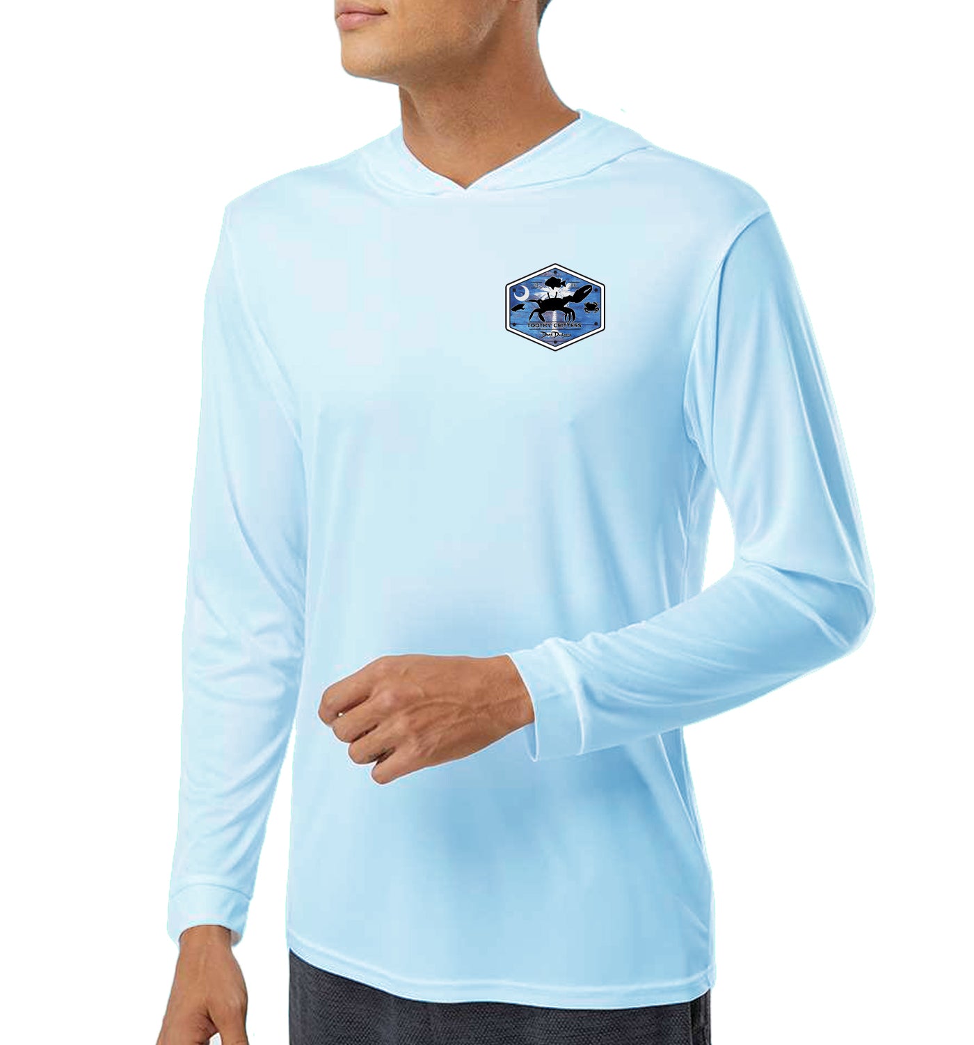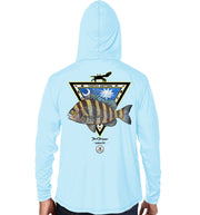 Experience exceptional style and functionality with David Dunleavy’s Men's South Carolina Sheepshead Long Sleeve Performance Hoodie. Featuring a masterfully crafted illustration of a Sheepshead alongside the South Carolina flag, fiddler crabs, Asian crabs, muddy crabs, and sand fleas, this design showcases expert attention to detail. The striking artwork covers the back, complemented by coordinated Sheepshead and South Carolina Flag graphics on the left chest and sleeve. Constructed from lightweight, breathable performance fabric, the hoodie ensures comfort across various conditions and pairs effortlessly with shorts or jeans. It is also machine washable for easy maintenance.
