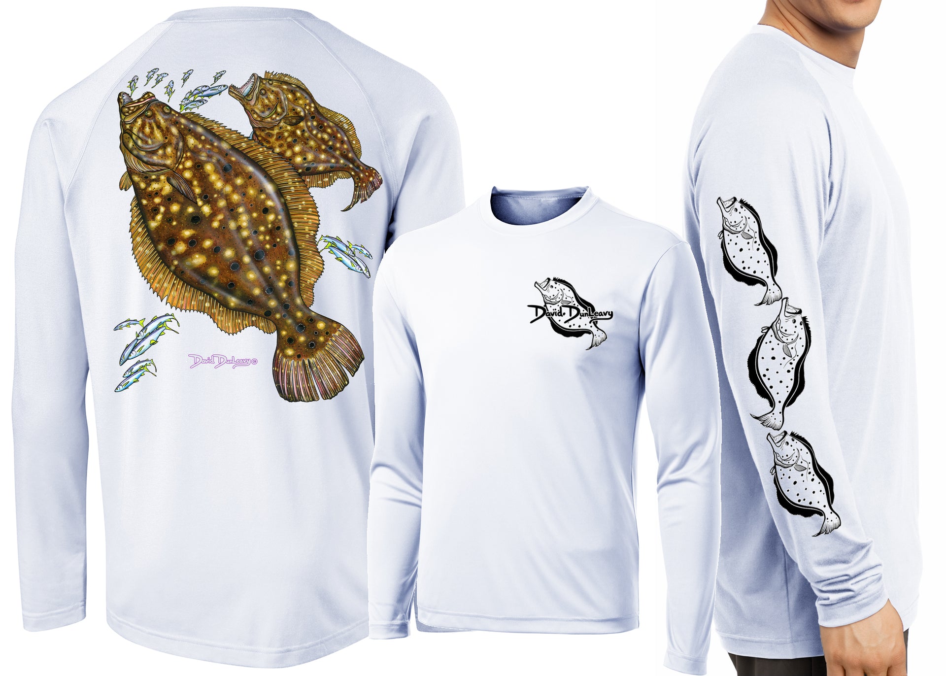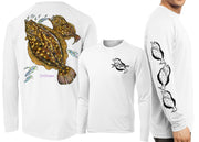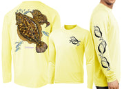 Dive into style with the Men's Performance Flounder Long Sleeve, where underwater action meets everyday wear. This tee features a bold back graphic of two flounders chasing baitfish, complemented by sleek Deco Designs on the chest and sleeve. Built for performance, it shields you from the elements while keeping that playful fishing vibe alive. Perfect for anglers and water enthusiasts who refuse to compromise on looks or functionality.