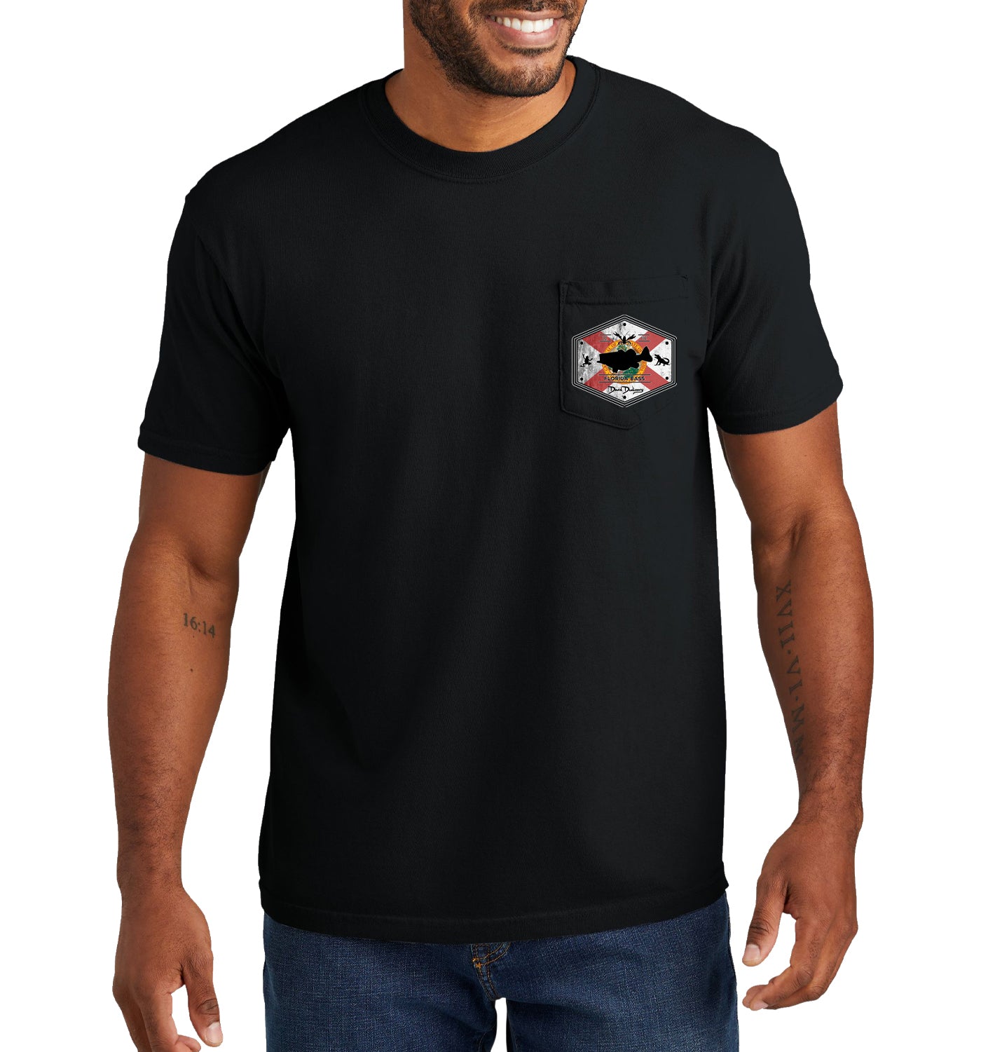 Men's Size Florida Bass Short Sleeve Garment Dyed Black Pocket T-Shirt