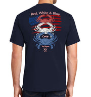 Men's Red White & Blue Crab Short Sleeve Navy Cotton T-Shirt