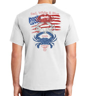 Men's Red White & Blue Crab Short Sleeve White Cotton T-Shirt