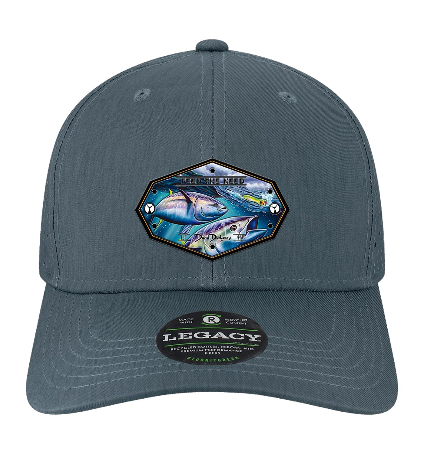 Experience the ultimate comfort with Bluefin Tuna performance hat, designed by renowned artist David Dunleavy. This versatile hat, featuring a Bluefin Tuna chasing a lue, is perfect for active individuals on land or at sea. It is durable, lightweight and tailored to fit your lifestyle, making it the go-to choice for all your everyday adventures. One size fits most.