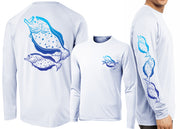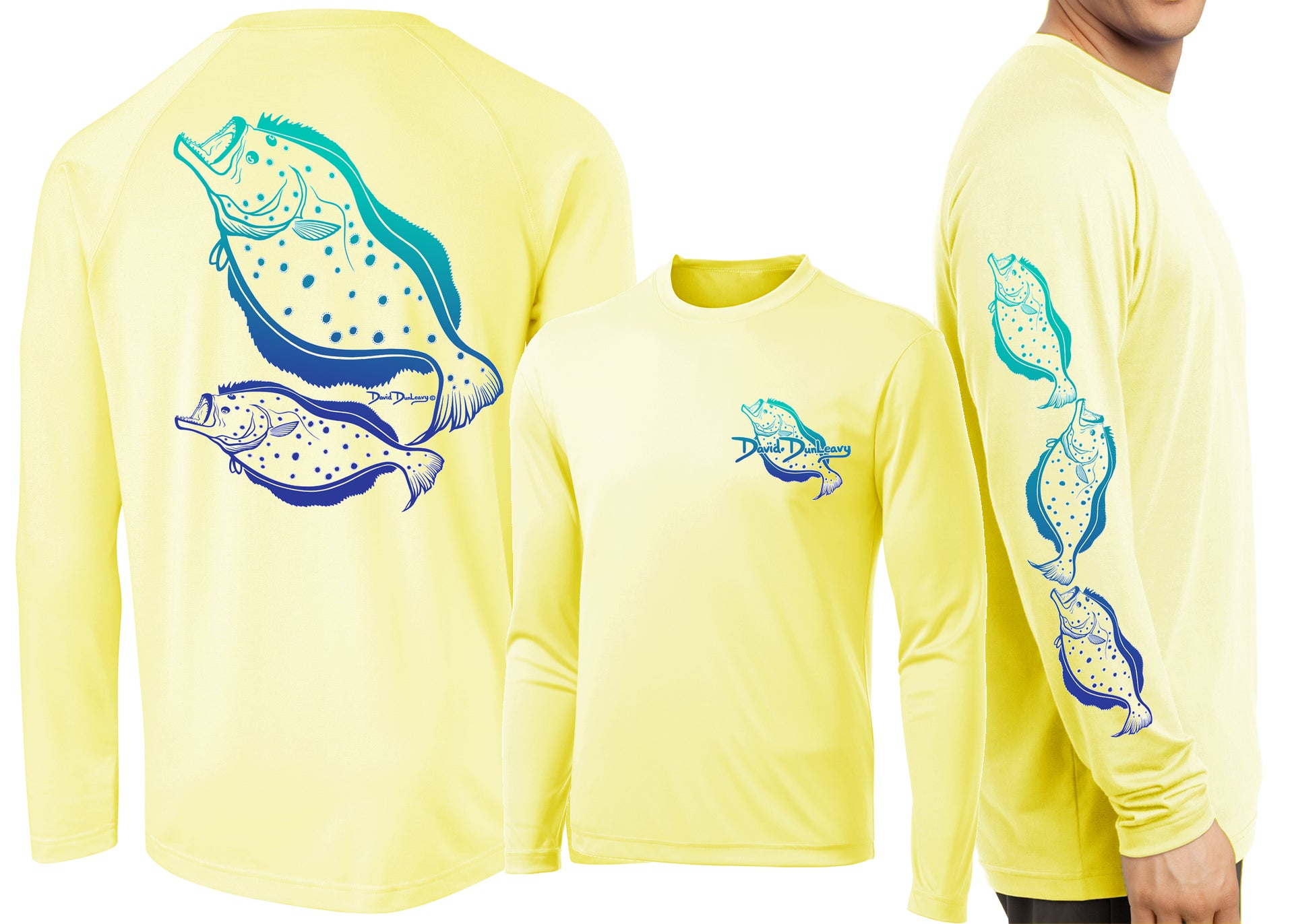 David Dunleavy’s Vintage Flounder Deco showcases a Flounder Deco Design on the left chest, sleeve, and back of a long-sleeve performance tee. The classic Deco graphic on the back, paired with designs on the chest and sleeve, ensures you remain stylish while staying shielded from the elements.