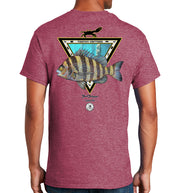 Men's Sheepshead Toothy Critters Short Sleeve Heathered Cardinal Cotton T-Shirt