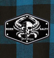 Our David Dunleavy Born Salty Skull Crab Flannel Shirt is made from ultra-soft 200gm 60% Cotton/40% Polyester blend fabric that is now available in 4 timeless Buffalo plaid color options. This flannel featuring Born Salty Skull Crab Patch is super soft with a durable & substantial feel. Key features include two front pockets, double layer back yoke, button front closure and rollup sleeve vents. It’s the go to piece to layer up for cold days on the water, beach or a night out on the town.