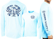 David Dunleavy’s Men's Performance South Carolina Born Salty Skull Crab Long Sleeve T-shirt combines exceptional style with reliable protection. Showcasing Dunleavy’s exclusive South Carolina Born Salty Skull Crab trademark alongside South Carolina Flag and Skull Crab, the design prominently features the Born Salty Skull Crab on the back, with complementary Born Salty Logos on the left chest and sleeve. Crafted from lightweight, breathable fabric, this performance shirt ensures comfort in diverse conditions and pairs well with both shorts and jeans. It is machine washable for convenient upkeep and lasting wear.