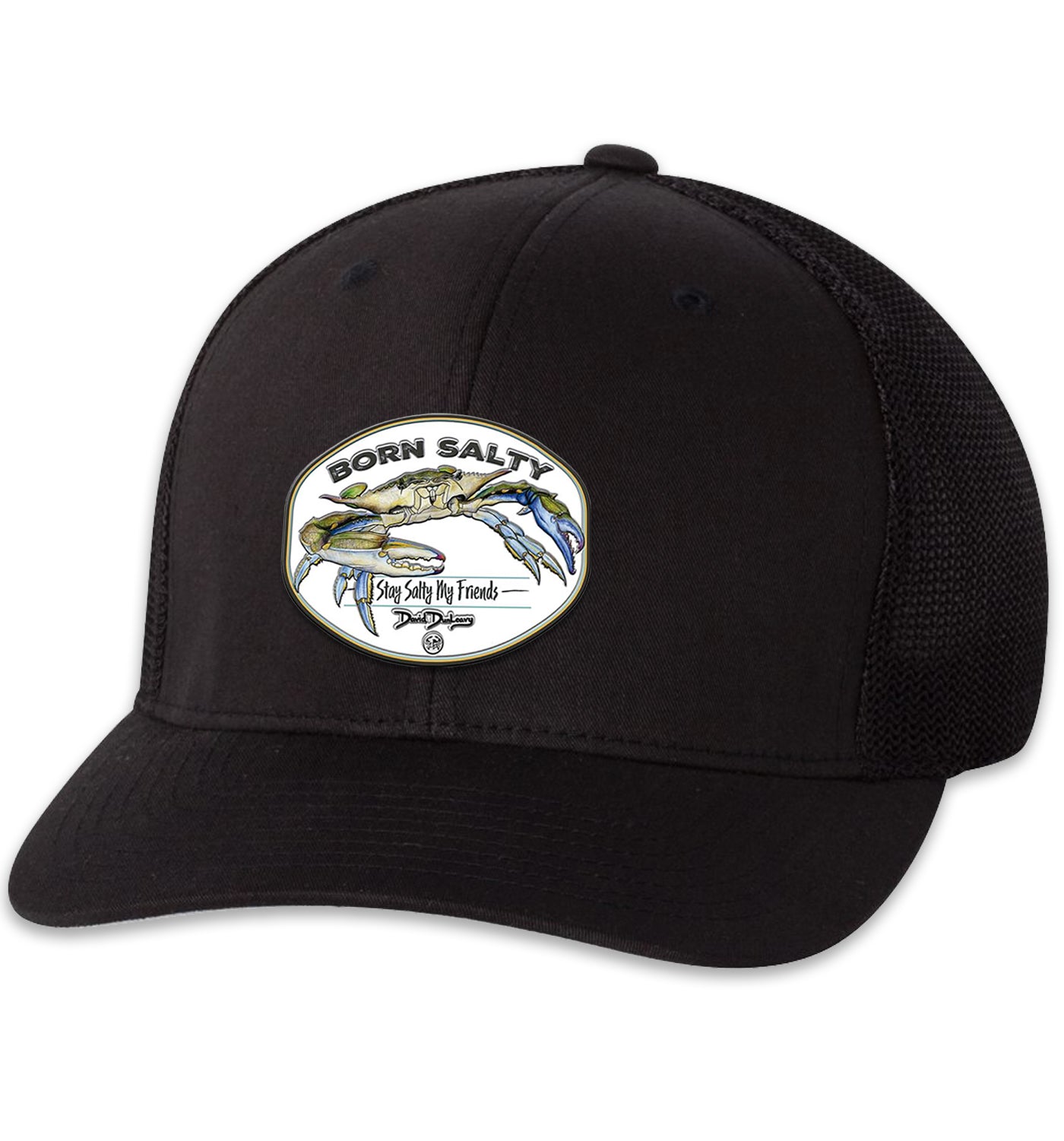 Born Salty Blue Crab 6 Panel Trucker Flexfit Black Black Hat