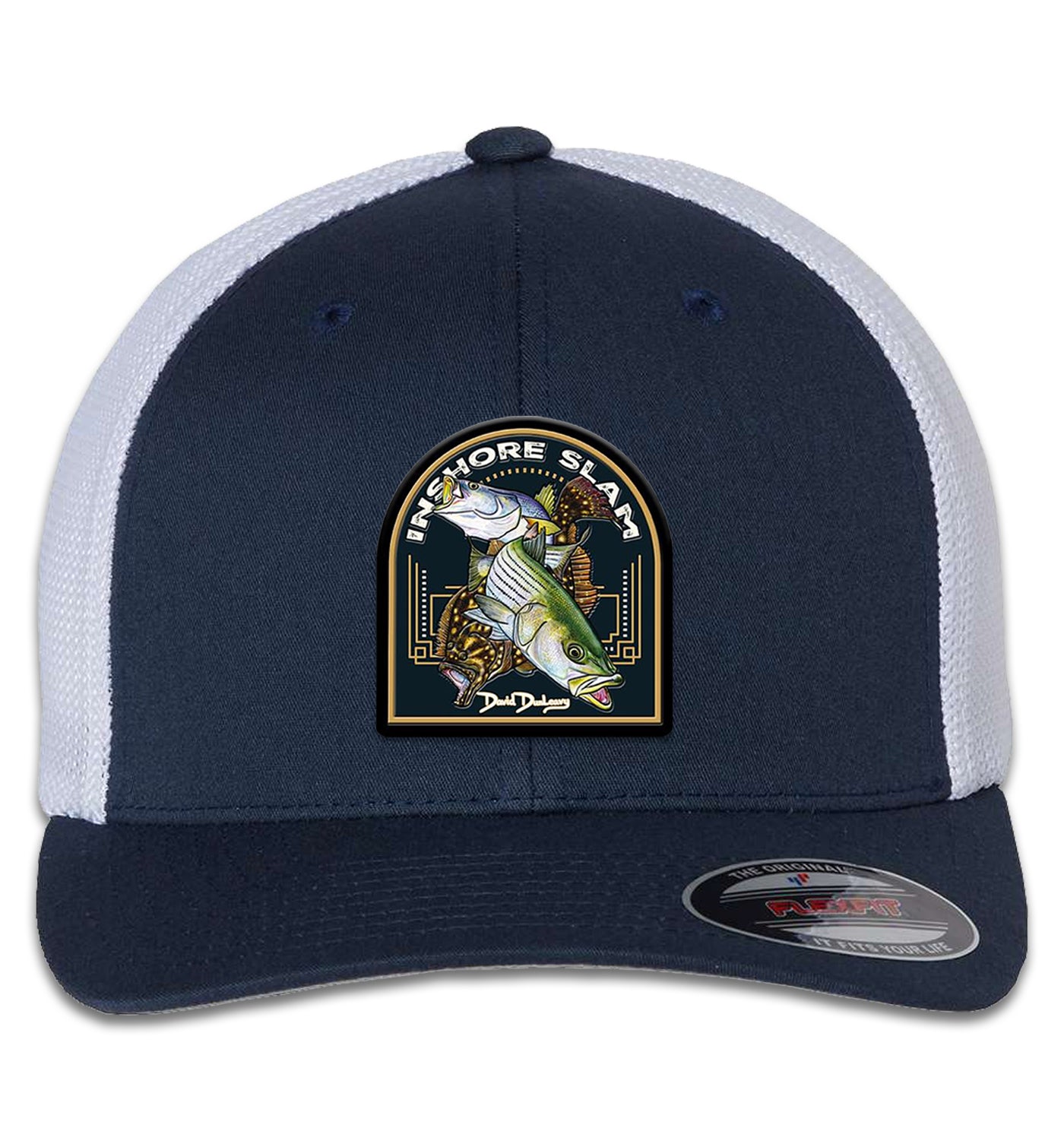 Inshore Slam 6 Panel Navy White Flexfit Trucker Hat