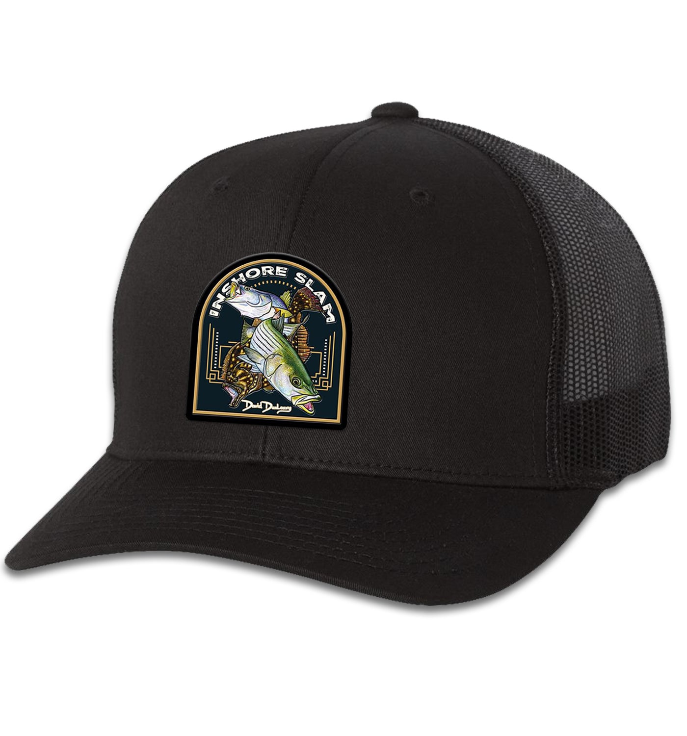 Inshore Slam 6 Panel Trucker Snapback Black Black Hat