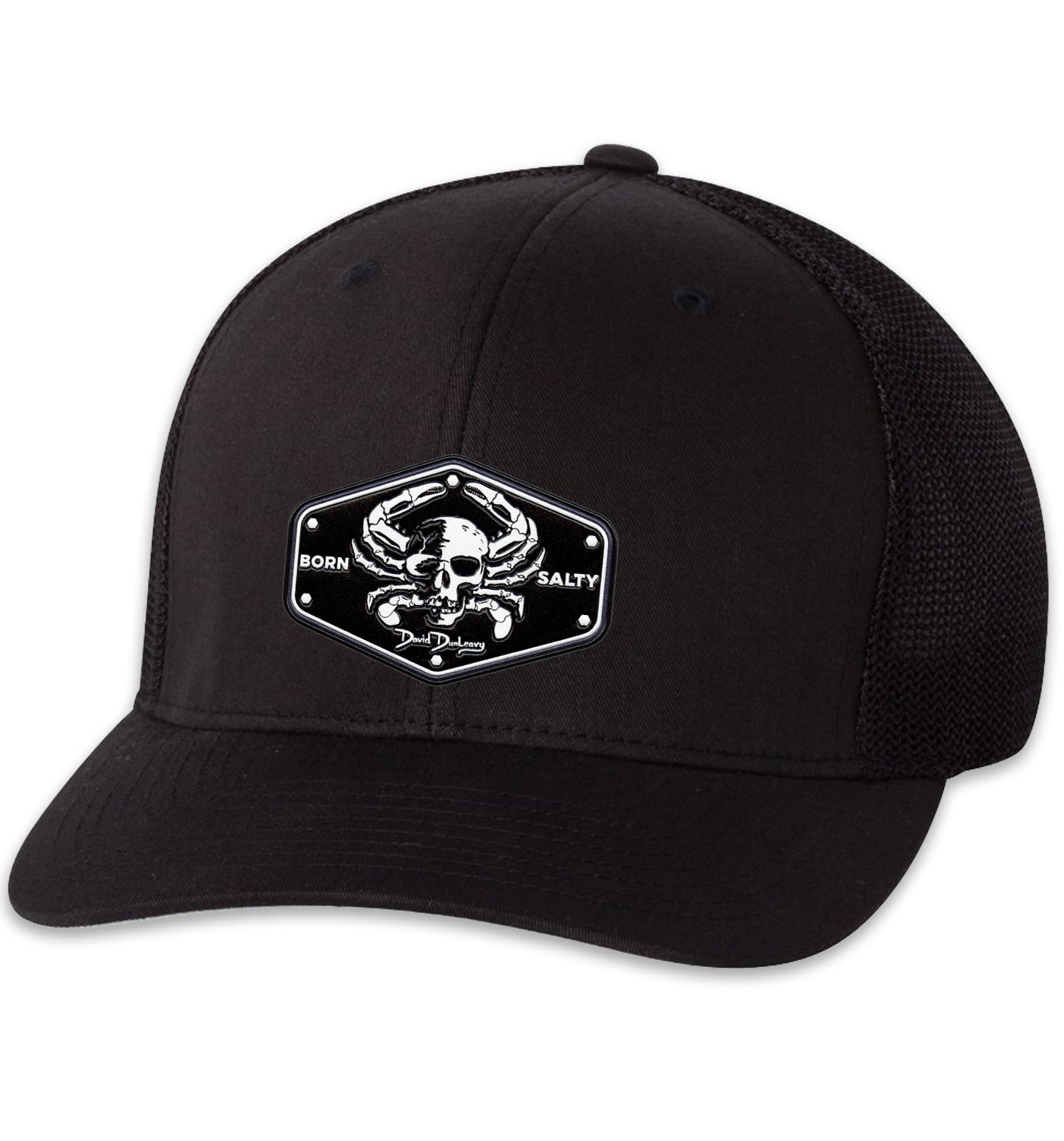 Born Salty Skull Crab 6 Panel Trucker Flexfit Black Black
