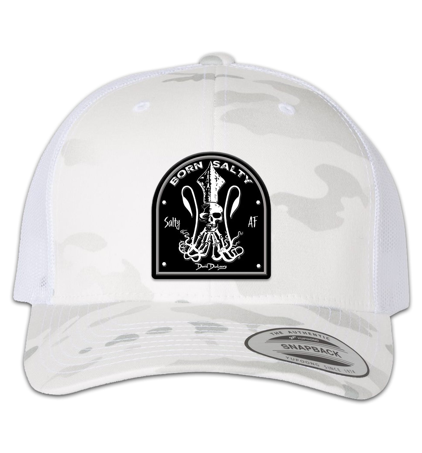 Born Salty Skull Kraken 6 Panel Trucker Snapback Hat Multicam Alpine White