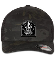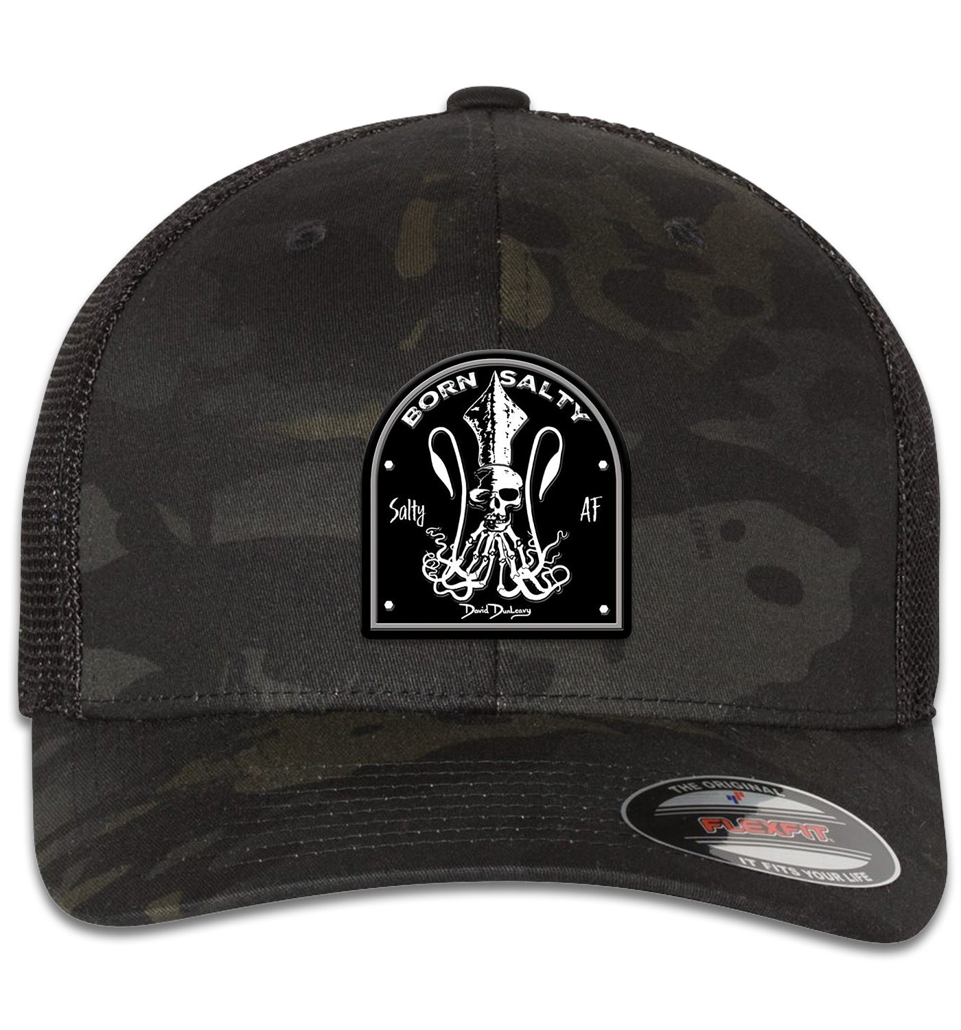 Born Salty Skull Kraken 6 Panel Trucker Snap Back Hat Multicam Black Black