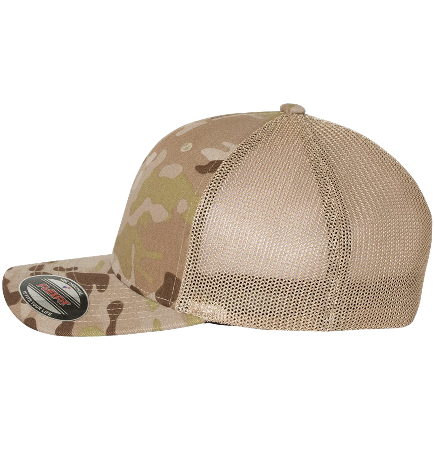 Flounder Kraken 6 Panel Trucker Flexfit Multicam Arid Tan Hat