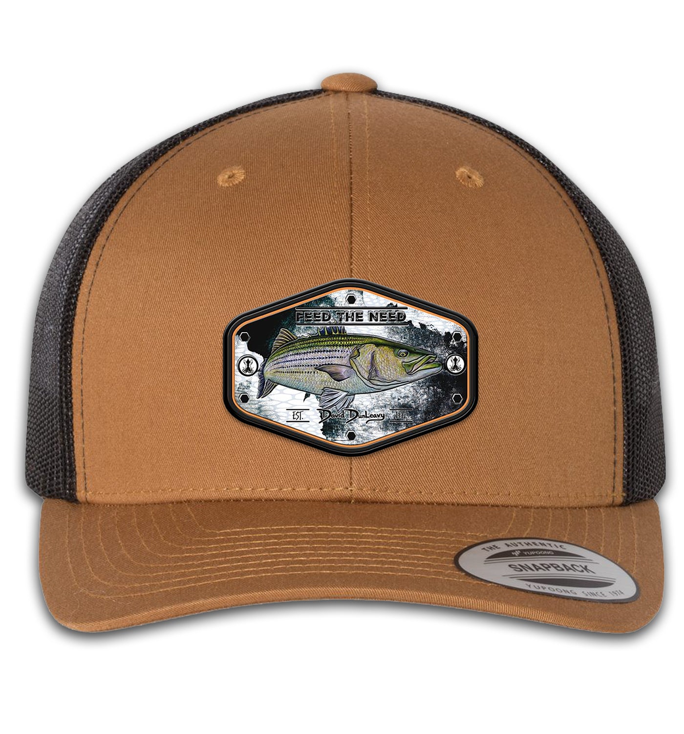 Unlock ultimate comfort with Stripah Kraken performance hat, designed by acclaimed marine life artist David Dunleavy. This Stripah Kraken 6 Panel Trucker Snap Caramel Black Hat is perfect for daily wear, on or off the water. Featuring a mesh back and snap back closure, it's ideal for warmer climates, providing superior ventilation. Its design showcases a striped bass and kraken designs, ensuring maximum comfort. One size fits most.